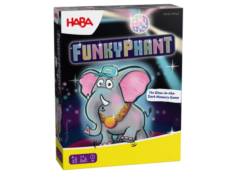 Funkyfant is een vrolijk en actief kaartspel dat elk feestje tot leven brengt! Zodra de muziek start, voert Funkyfant zijn coole dansmoves uit – aan de spelers om goed op te letten, de bewegingen te onthouden en ze zo snel mogelijk correct na te doen. Dit spel stimuleert op speelse wijze het geheugen, de concentratie en het reactievermogen. Met 16 danskaarten, eenvoudige spelregels en een korte speelduur van ongeveer 10 minuten is Funkyfant ideaal voor jonge dansliefhebbers en leuke familiespelmomenten. Geschikt voor 2 tot 4 spelers.