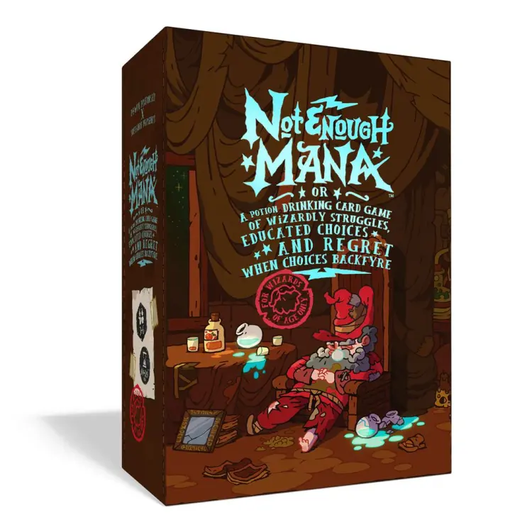 Not Enough Mana is a 'potion' drinking card game for 3-6 fearless wizards (legal potion drinking age may vary depending on your kingdom’s laws). You’ll be destroying each other using epic spells, curses and artifacts while replenishing your mana by drinking magical potions.
