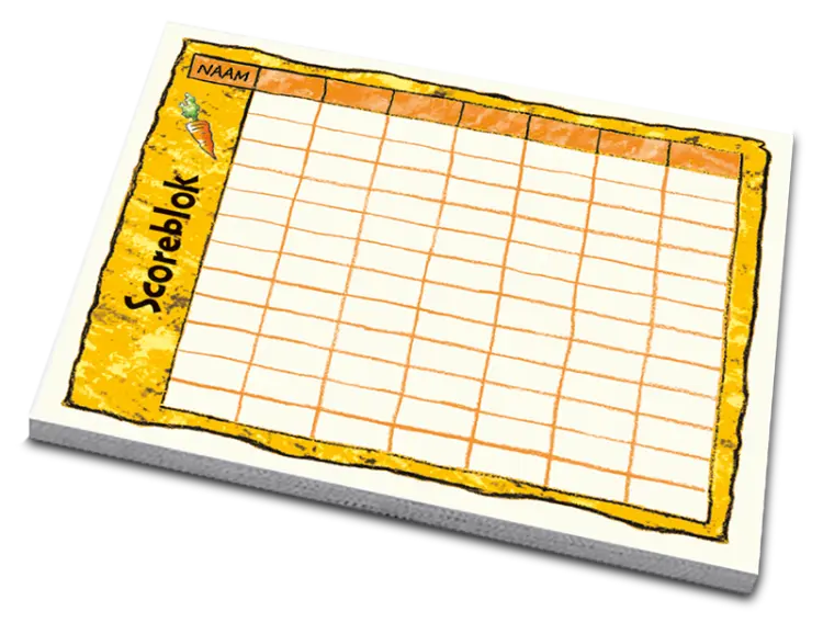 Zoveel Konijnenhokken gespeeld dat je scoreblok bijna leeg is? Geen nood, met deze extra scoreblokken kun je weer een tijd vooruit!