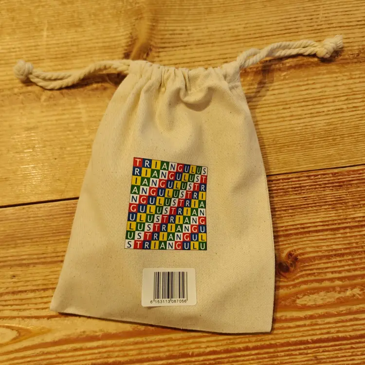 Triangulus speel je alleen. Je legt een vierkant van 25 kaartjes op basis van een voorbeeldsteen.
