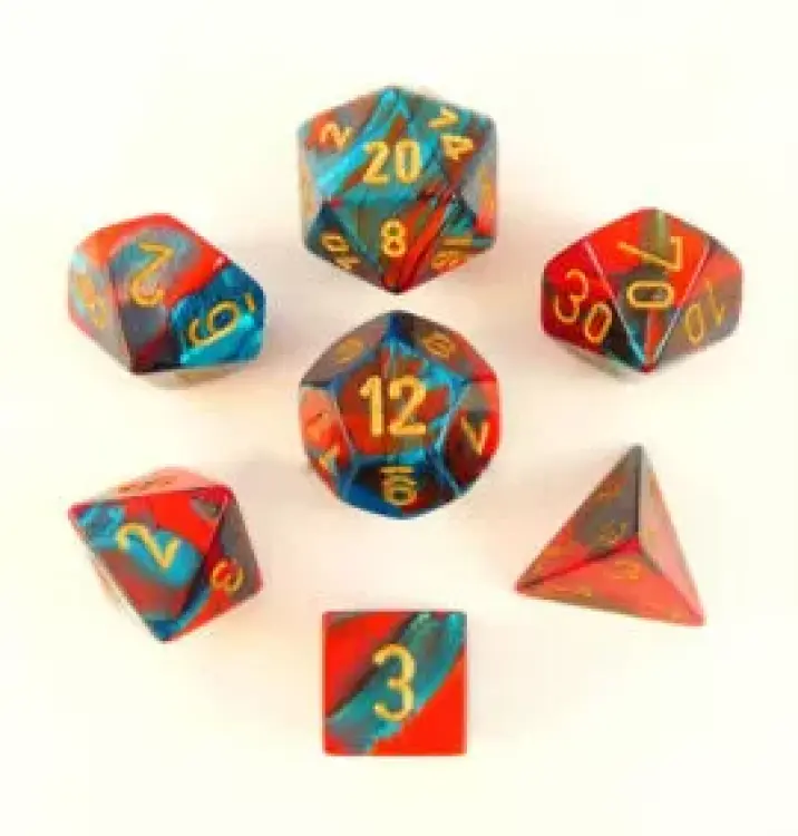 Gemini Red-Teal/gold Polydice Dobbelsteen Set (7 stuks)