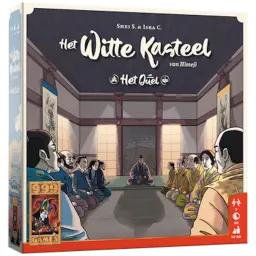 Japan, 1761: de provincie Harima. Daimyo Sakai Tadazumi is één van de belangrijkste adviseurs van het Tokugawa-shogunaat, dat de scepter zwaait over de regio van het Himeji-kasteel. Het is dus in het belang van de verschillende lokale stammen om in een goed daglicht bij de Sakai-stam te staan. Om invloed te bemachtigen, moeten ze leden van hun familie op elk niveau binnen het Witte Kasteel zien te krijgen. In Het Witte Kasteel kruip je in de huid van een leider van een kleine stam. Je strijdt om de positie en toekomst van je stam in het hof van de Witte Reiger. Listig en nauwkeurig resource management en het huisvesten van familieleden binnen het Himeji-kasteel vormen de sleutel naar de winst! Wie aan de beurt is, kiest een dobbelsteen van één van de drie bruggen en zet die op het speelbord of zijn eigen tableau in. De waarde van de dobbelsteen die hij daarmee bedekt bepaalt of hij daar geld voor moet betalen of juist krijgt. Voor het kiezen van een lage dobbelsteen krijg je een bonus, die in de loop van het spel steeds aantrekkelijker wordt. Daarna voer je de acties uit die bij het betreffende veld horen. De verschillende grondgebieden, zoals de bron, de trainingsterreinen en het kasteel bieden verschillende actiemogelijkheden. Zo kun je munten, daimyozegels en grondstoffen ontvangen, maar ook tuinmannen installeren of stamleden als hovelingen op de sociale ladder binnen het kasteel laten klimmen totdat ze misschien wel de etage van de daimyo bereiken. Tijdens het spel scoor je al wat punten, maar het is vooral te doen om de situatie aan het einde. Dan leveren je hovelingen op verschillende manieren punten op. Omdat de dobbelstenen op de bruggen en de dobbelsteentegels op het speelbord altijd willekeurig worden gedobbeld en gelegd, is de uitgangspositie elk spel anders. Hetzelfde geldt voor de acties die op de verschillende plekken beschikbaar zijn. Daardoor blijft Het Witte Kasteel van Himeji altijd verrassend en uitdagend.