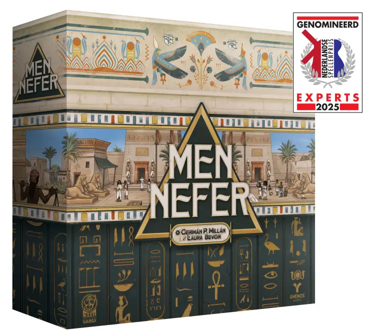 In Men Nefer duiken de spelers in een Egyptisch thema. Liefhebbers van Bitoku zullen het actie-selectie-mechanisme herkennen. In Bitoku kun je elke beurt kiezen uit 3 opties (kaart spelen, dobbelsteen plaatsen of dobbelsteen over de rivier plaatsen). In Men Nefer zit een vergelijkbaar systeem, waarbij je ook kunt kiezen uit drie opties. Het spelen van een actietegel is altijd de eerste actie in een ronde. Hiermee kies je ook direct een van de 5 rijen van het actiespoor uit waar je een worker op zet. Met de tweede actie kun je een actie op dit spoor doen, als je er al eerder een worker op hebt gezet door het spelen van een actietegel. En met de derde actie kies je een nieuwe actietegel uit die je in de volgende ronde kunt gebruiken.