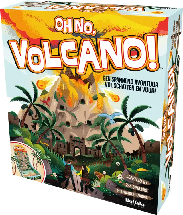 Oh No, Volcano!In Oh No, Volcano! , race je om oude schatten te beklimmen en te verzamelen terwijl je lava ontwijkt!Bij elke bocht ligt gevaar in het verschiet. Speel klimmerkaarten om je team van ontdekkingsreizigers de vulkaan op te bewegen en laat dan een lavabal vallen vanaf de plek die op elke kaart staat vermeld. Kijk hoe de lavaballen rammelen en naar beneden rollen, waarbij ze alle ontdekkingsreizigers op hun pad afslaan... inclusief die van jezelf als je niet oppast!Kies je bewegingen zorgvuldig en verzamel als eerste al je schatten.