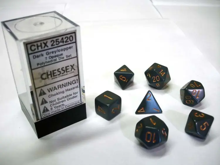 Opaque Dark Grey/copper Polydice Dobbelsteen Set (7 stuks)