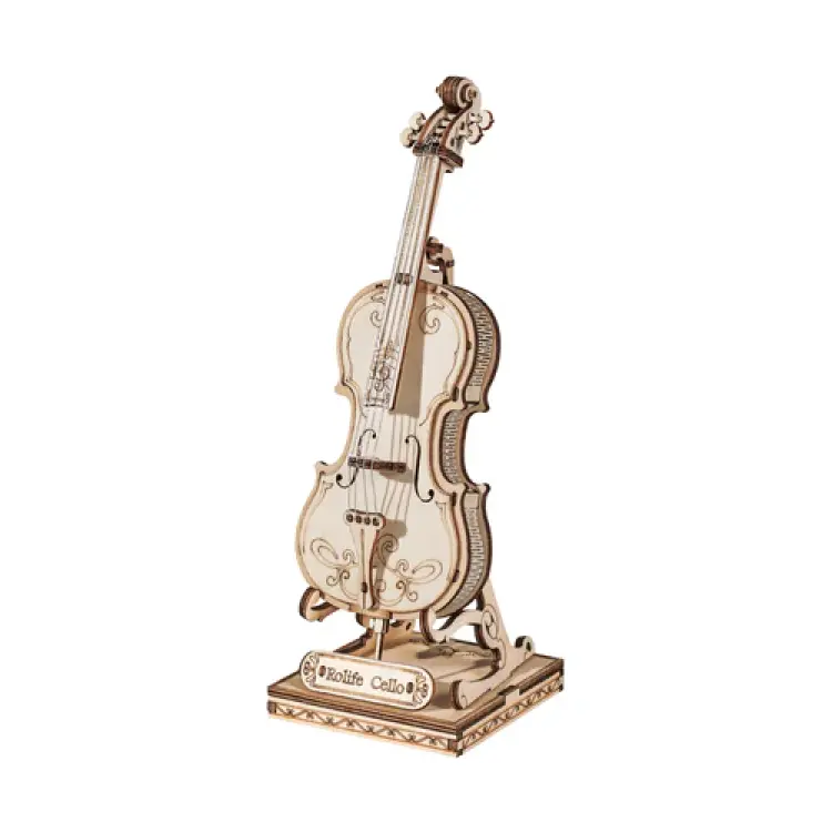 Welk muziekinstrument ademt in jouw ogen statige elegantie uit? Grote kans dat je denkt aan de cello. En ook dit statische Robotime DIY model van Rolife is een toonbeeld van gratie. Het ontwerp is zeer gedetailleerd zoals de werkelijkheid ook is. Het omvat de krul aan de bovenkant, de vier sleutels om te stemmen en de sierlijke G-sleutel op de prachtig versierde hals. De snaren lopen over de kam naar de staart en zelfs de verfijnde klankgaten zijn aanwezig op de rijkelijk versierde klankkast van jouw cello.