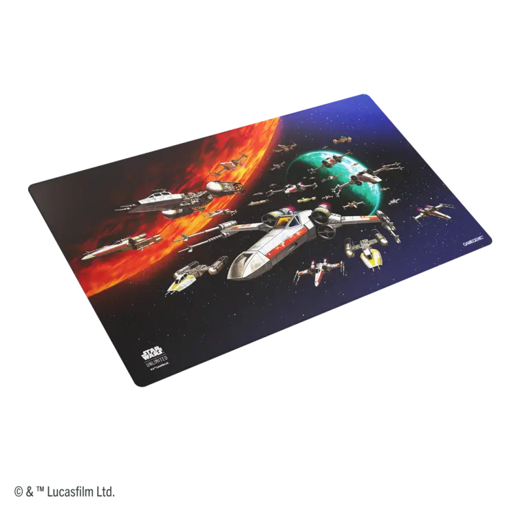 The gaming experience continues with set 6 and four new designs! This premium quality, full color printed, and officially licensed Star Wars™: Unlimited Game Mat is a must-have accessory for every passionate gamer! Available in 4 new premium-quality prints of iconic designs. It brings the exciting atmosphere of the Star Wars franchise right to the gaming table. The Game Mat enriches the game and perfectly complements every round played! The softly cushioned playmat is 2 mm thick and protects playing cards from rough or dirty surfaces. Each mat has a softly cushioned top, anti-slip backside and premium stitching around the edges that keeps it safely in place during gameplay. The fascinating design, the comfortable feel, and soft material are ideal for an upgraded gaming experience or a home desktop. The Game Mat is perfect for all enthusiastic fans of the franchise as well as players of TCGs, LCGs, and a vast variety of games alike.
